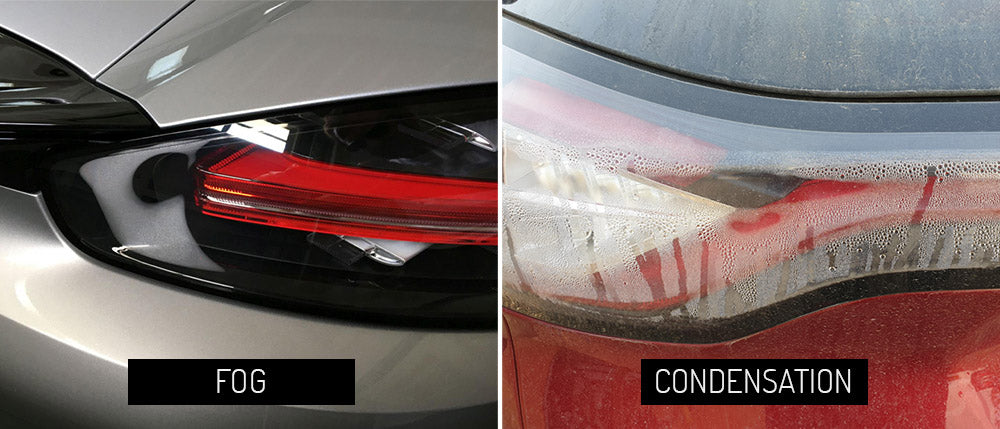 However, if you observe condensation, such as water or water droplets inside the tail lights, please contact us immediately so that we can address this issue. Condensation is considered a valid concern and is covered under our warranty. To help differentiate between fog and condensation, we have provided pictures below for your reference.